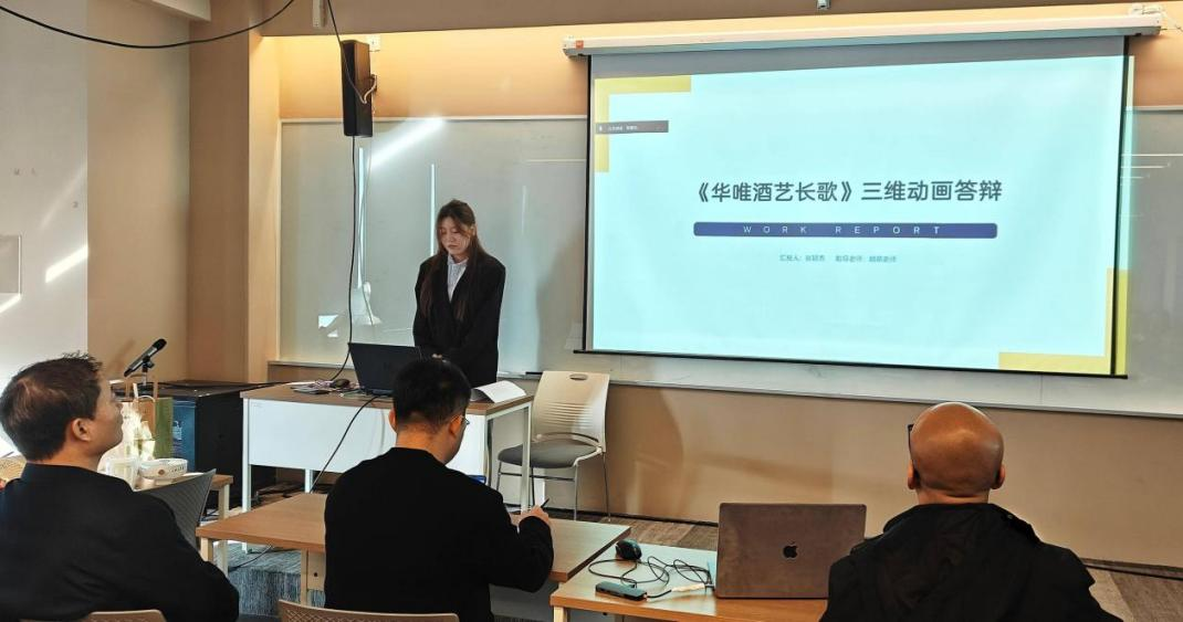 随后,刘仁山参与了数字媒体技术专业学生的毕业设计答辩,对学生近一段时间以来在企业实训基地进行毕业设计成效给予肯定,同时针对毕业设计作品以及相关答辩文档完善等提出建设性意见。