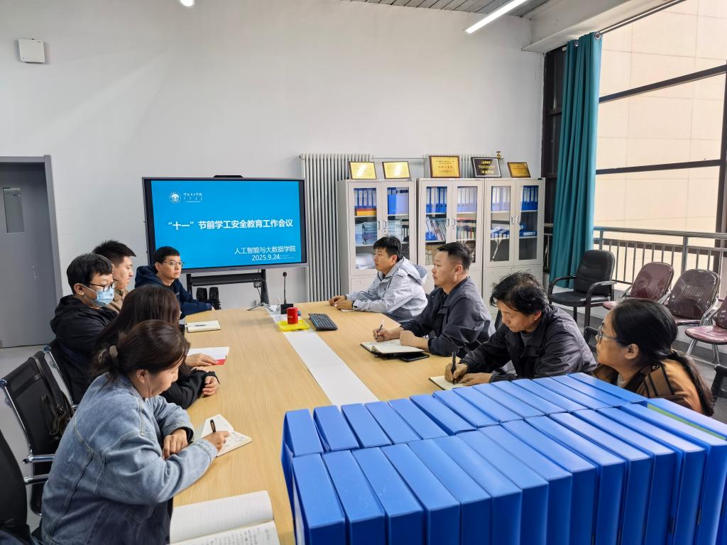 为进一步提升假期校园安全防护水平,有效预防和应对各类安全风险,人工智能与大数据学院于2025年9月24日下午召开国庆节前安全工作会议,全体专兼职辅导员参加,会议由党总支副书记赵君主持。