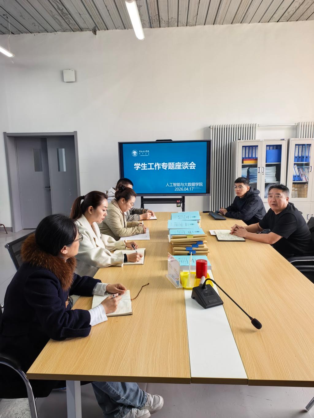 为落实巡视组工作反馈与学校工作要求,提升工作质效,4月17日下午,在行知楼B105,人工智能与大数据学院召开全体辅专兼职导员座谈会,专题梳理查摆近期学生教育管理服务工作中的问题,推动整改。会议由学院党委朱福生书记主持,全体专兼职辅导员参加座谈。