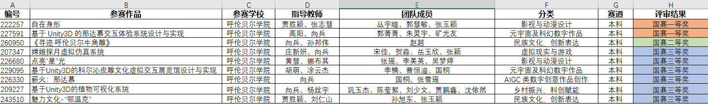本届参赛作品主题多元、方向广泛,涵盖元宇宙及科幻数字作品、影视与动漫设计、AIGC类数字创意作品创作、虚拟现实与游戏、民族文化创新表达等多个领域。我院学生紧扣北疆文化与数字艺术融合发展的时代脉搏,深入挖掘技术创新与文化表达的结合点,创作出一批兼具思想深度、艺术美感与社会价值的优秀作品,赢得了专家评审的高度认可。