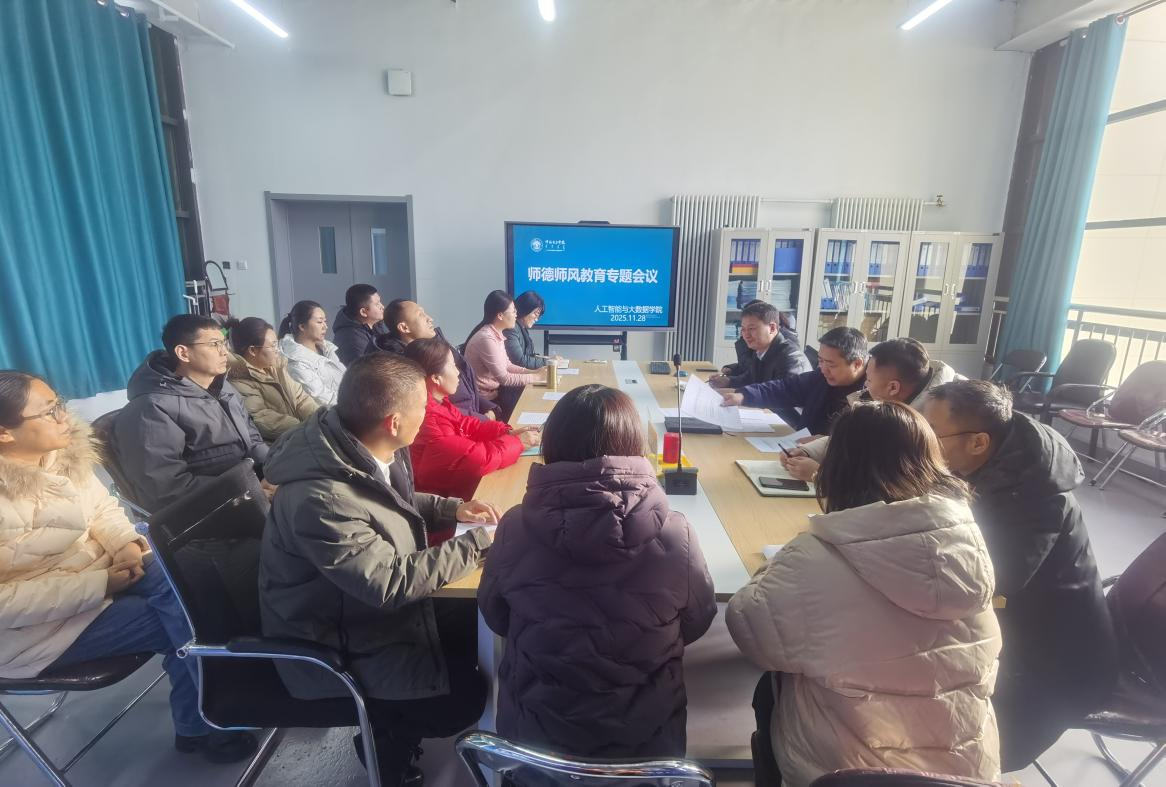 为深入落实学校师德师风建设部署,强化教师职业规范意识,11 月 28 日,人工智能与大数据学院在行知楼B215会议室召开了师德师风教育专题学习会议,会议由学院党委书记朱福生主持,学院全体领导班子成员、环节干部、系部负责人、团学办及部分教师参加会议。