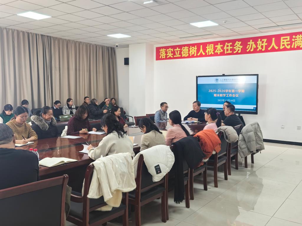 12月10日,人工智能与大数据学院在产教融合北楼510会议室召开了2025-2026学年第一学期期末教学工作会议。会议由学院院长刘仁山主持,全体教职工参会。