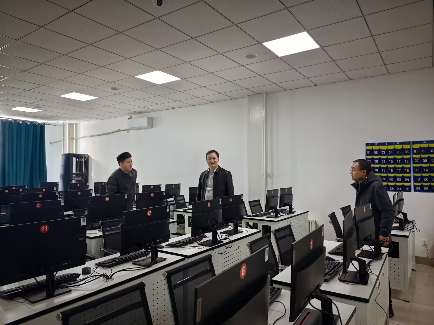 为切实加强实验室安全管理,规范实验教学运行秩序,保障新学期各项教学科研工作平稳有序开展,2026年3月1日,人工智能与大数据学院院长刘仁山、副院长耿卫江带队,实验中心主任、教科研办主任等相关负责人共同参与,对计算机实验教学中心各实验室进行学期初安全与运行保障专项检查。
