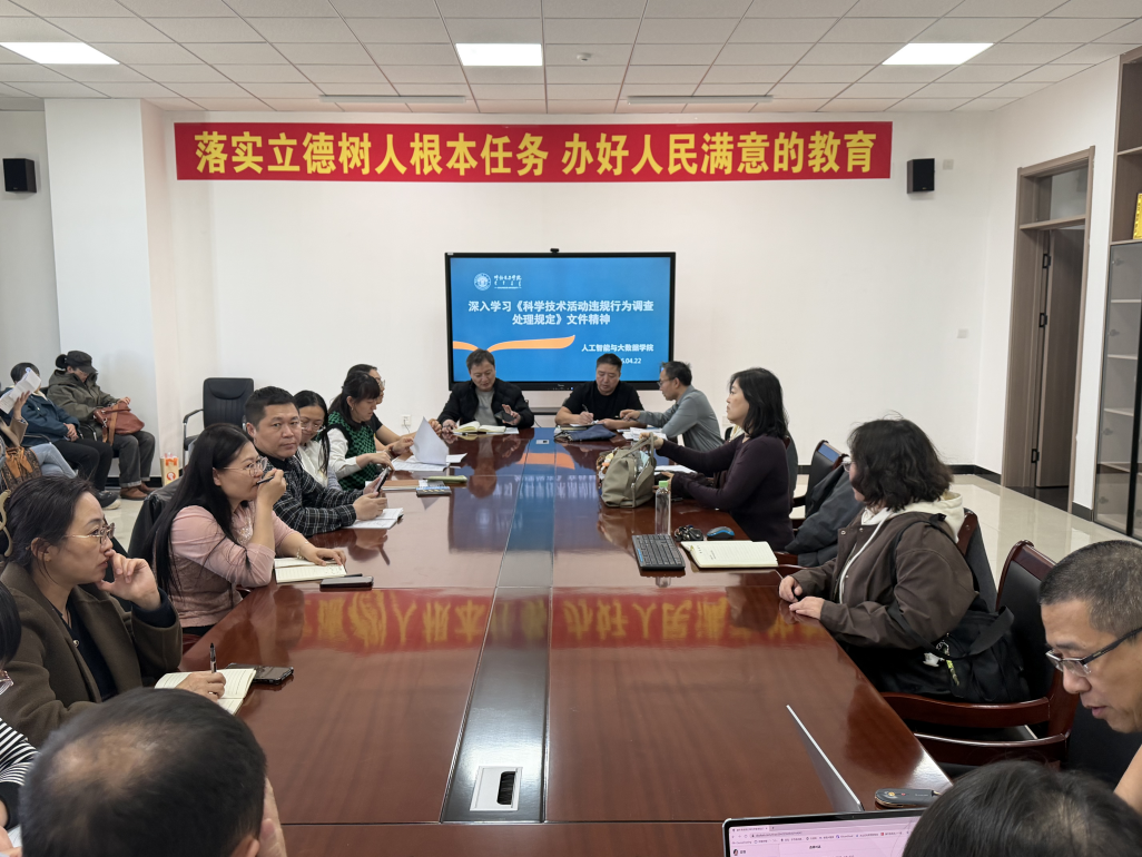 为筑牢科研诚信防线、规范科研活动管理,助力工程教育认证建设,4月22日,人工智能与大数据学院在产教融合北楼510召开专题会议,组织全体教职工集中学习新版《科学技术活动违规行为调查处理规定》(科技部令第24号),会议由学院院长刘仁山主持,全体教职工参会。