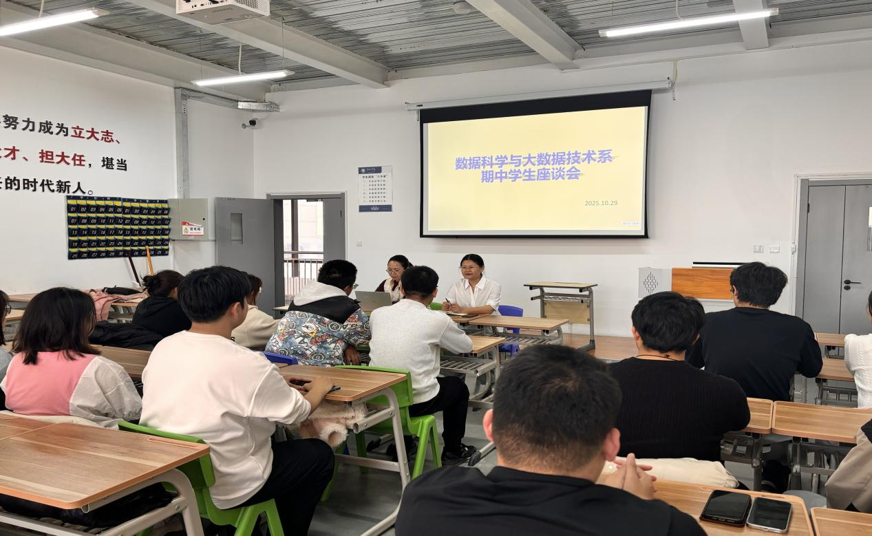 为了了解学生在学习和生活中遇到的问题,进一步加强师生之间的沟通与交流。10月29日下午4点,数据科学与大数据技术系在C401教室成功召开了2025—2026学年第一学期期中学生座谈会。本次会议由系主任张君主持,教师赵乌吉斯古楞和2024、2025级学生代表参加.