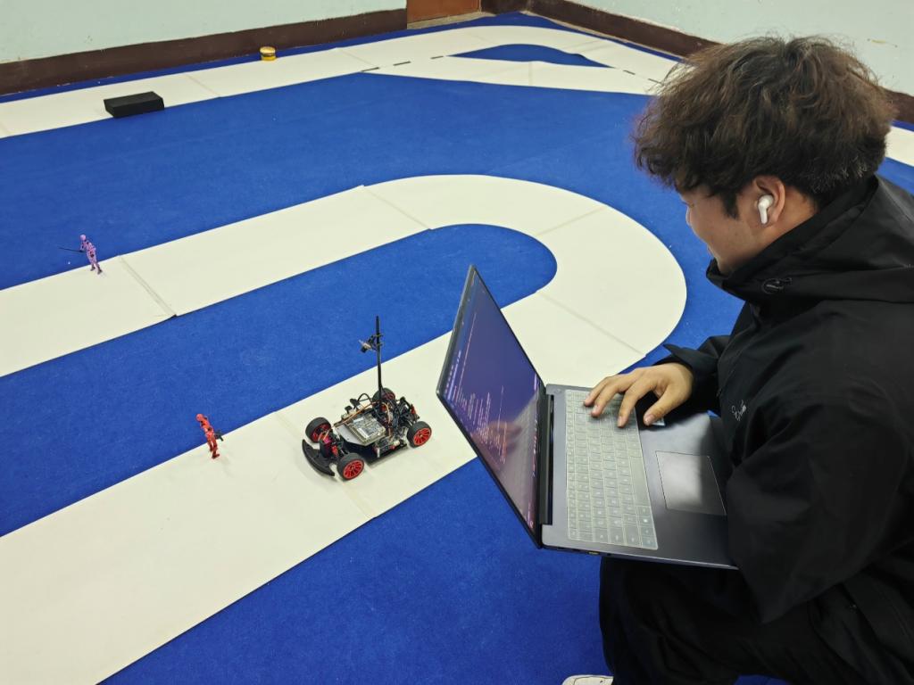 备赛现场,各团队精准施策、协同攻坚。机器人竞赛团队深耕中国机器人及人工智能大赛项目,重点调试人形机器人步态规划与射门动作稳定性,全力攻克核心技术难点;智能驾驶车战队聚焦白名单赛事赛道,持续优化路径规划与弯道控制算法;多支挑战杯参赛队伍集中打磨项目,围绕核心技术梳理、商业模式设计、路演材料优化等关键环节迭代升级。