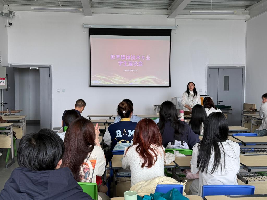 为全面了解数字媒体技术专业各年级学生在专业学习、实践教学、职业规划及日常学习生活中的实际困难与诉求,搭建师生间的沟通平台,进一步优化教学管理与学生服务工作,2026年4月23日下午,数字媒体技术系于行知楼C405教室组织召开了学生座谈会。系部专任教师贾胜颖、向兵、企业教师李喆,以及2023级、2024级、2025级各班的班长、学习委员与学生代表共同参会。会议由系主任黄慧主持。
